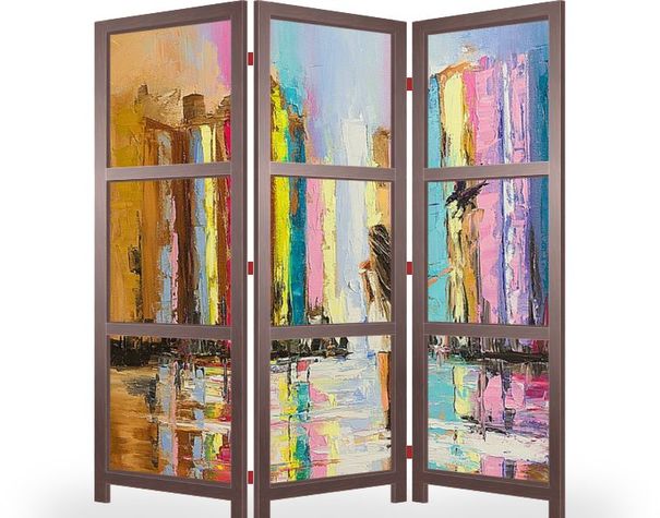 Описание ширмы Картина написана по мотивам различных скандинавских мифов и легенд: мост, верхний город и два ворона, которые постоянно наблюдают за происходящем в нашем мире.
