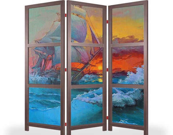 Описание ширмы Шикарная картина с великолепными видом на море. Направление - маринизм. Яркие, сочные, реалистичные цвета. Работа передает мощнейшую энергетику природы