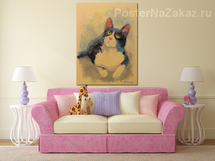 Описание ширмы Картина маслом на холсте,картина маслом для интерьера,картина маслом на подарок,поп арт,животные,кот черно белый,природа,живописные холсты,принт,постер,анималистика,коты