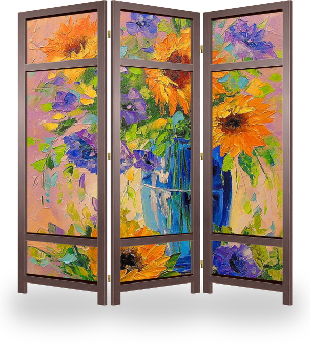 Описание ширмы Картина маслом на холсте,картина маслом для интерьера,картина маслом на подарок,живопись,импрессионизм,цветы,букет,подсолнухи,букет подсолнухов в вазе,постер,принт,