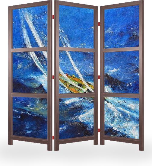 Описание ширмы Вход в мир настоящего яхтинга, испытаний, азарта. Стоять у штурвала, ощущать дыхание и мощь океана – естественное стремление для амбициозных личностей, настоящих лидеров. Эта картина - прекрасное решение для кабинета руководителя, для брутального хол