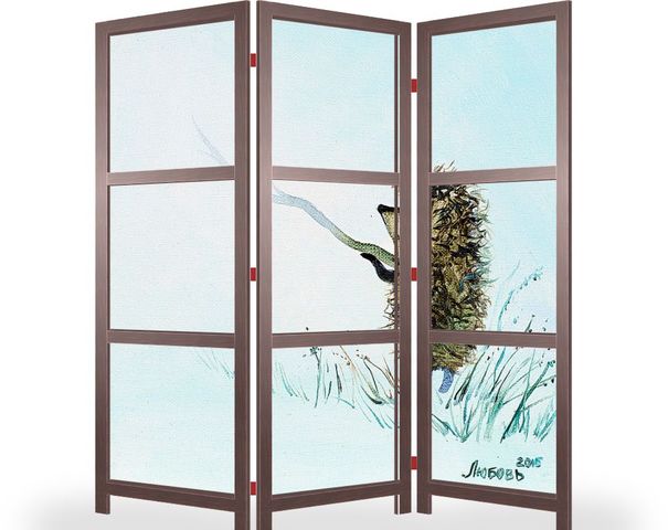 Описание ширмы В „Ежике в тумане” Ю. Норштейн говорит о первом соприкосновении с таинствами бытия, о загадочности всего сущего, о нелепой трагичности, существующей в мире, и о конечной его доброте. Этот фильм, полный тончайших психологических нюансов, свидетельству