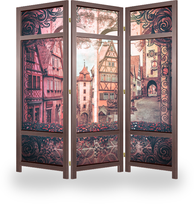 Описание ширмы Ширма с изображением улочки старой деревушки в винтажном стиле, будет прекрасно смотреться в гостиной.
