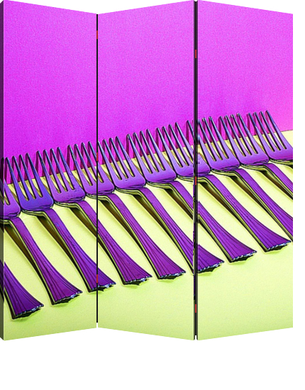 Описание ширмы "Очень простой натюрморт с вилками" - это фотоэтюд с предметами и цветным фоном. Простая минималистическая композиция, где главную роль играет свет, цвет, формы и пространственное расположение объектов съёмки