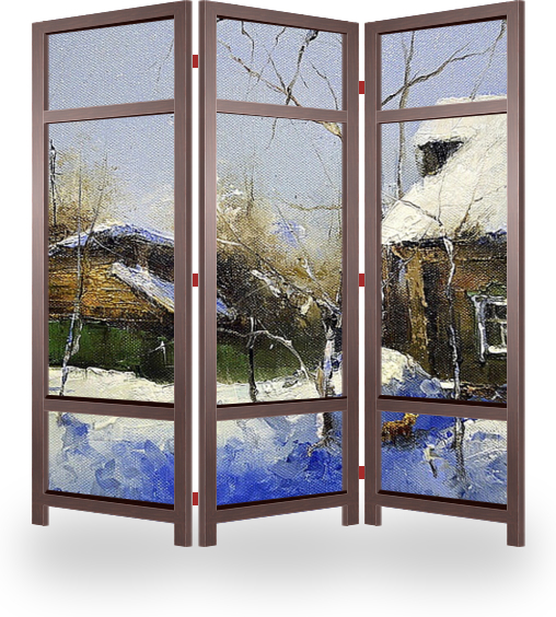 Ширма эконом отлично подойдет для временного размещения, рекламы, для отгораживания объектов интерьера и его дополнения. Лицевая сторона с изображением, обратная сторона открытый каркас