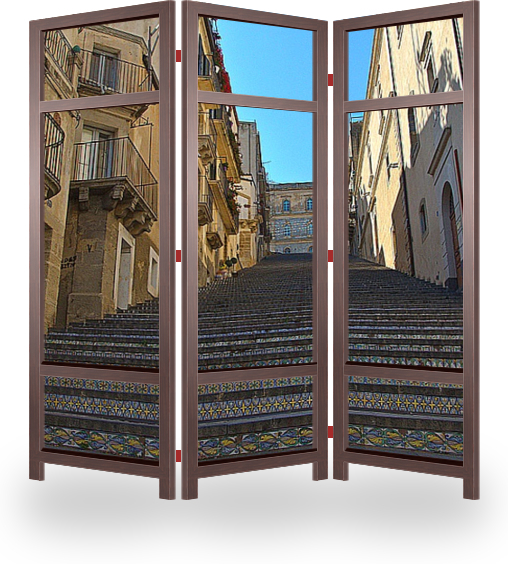 Описание ширмы Сицилия – самый большой остров, входящий в состав Италии. Эта удивительная родина внушительного вулкана Этна и небольшие острова вокруг нее омывается сразу тремя морями – Тирренским, Средиземный и Ионическим, отчего некогда эта местность носила назва
