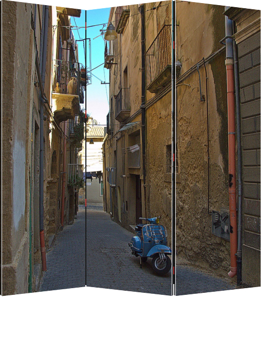Описание ширмы Сицилия – самый большой остров, входящий в состав Италии. Эта удивительная родина внушительного вулкана Этна и небольшие острова вокруг нее омывается сразу тремя морями – Тирренским, Средиземный и Ионическим, отчего некогда эта местность носила назва