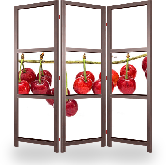 Описание ширмы Фотография спелой черешни на белом фоне. Фрукты являются прекрасным объектом для фотосъёмки в различных условиях и всегда прекрасно смотрится с любым фоном.