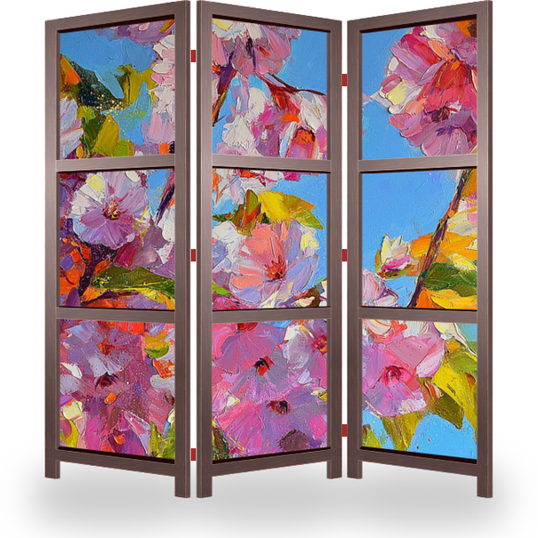 Описание ширмы "Розовый нектар" Небо с землёю Соединились в зыбком сплетении- Наплывший с моря туман Проник в цветущие кроны Сакуры горной. Небо с землёю Соединились в зыбком сплетении- Наплывший с моря туман Проник в цветущие кроны Сакуры горной.