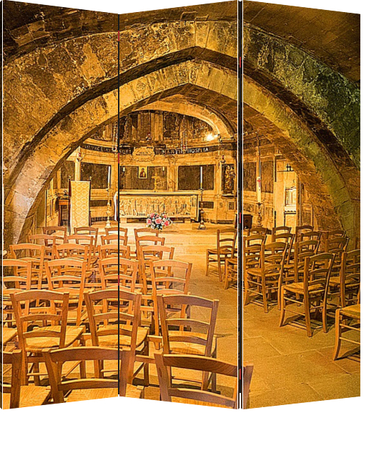 Описание ширмы Подземная часовня в церкви святой Марты. Тараскон (Tarascon) - город (коммуна) на юго-востоке Франции врегионе Прованс Альпы Лазурный Берег, департамент Буш-дю-Рон, округ Арль. Городстоит на берегу реки Роны, на противоположном берегу находится горо