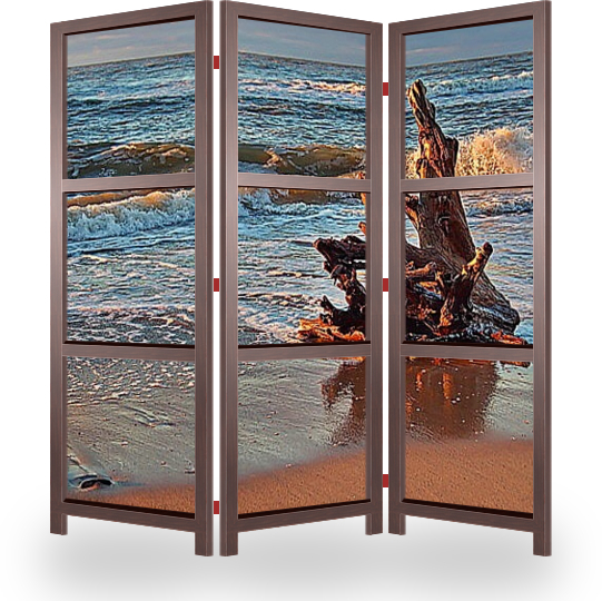 Описание ширмы Зимой, когда на берегу ещё не лежит снег можно увидеть после шторма очень живописные коряги, выброшенные на берег. В закатных лучах они выглядят необычно и притягательно...