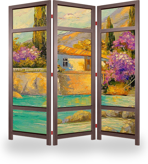 Ширма эконом отлично подойдет для временного размещения, рекламы, для отгораживания объектов интерьера и его дополнения. Лицевая сторона с изображением, обратная сторона открытый каркас