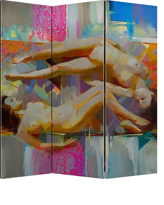 Описание ширмы Нирвана.Две обнаженные девушки,отдыхающие,испытующие блаженство от взаимной любви.Две нимфетки образуют символический круг единства. Холст,масло,2016 г.