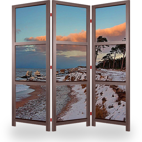 Описание ширмы Морской берег на закате всегда был очень популярной темой. А морской берег на закате зимой для многих выглядит весьма необычно и интригующе. Фото сделано в Латвии, город Лиепая.