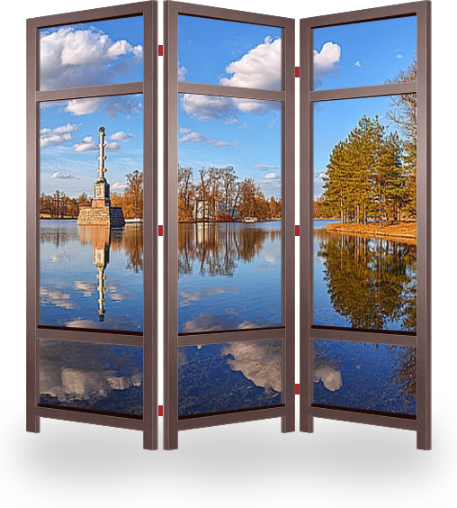 Ширма эконом отлично подойдет для временного размещения, рекламы, для отгораживания объектов интерьера и его дополнения. Лицевая сторона с изображением, обратная сторона открытый каркас