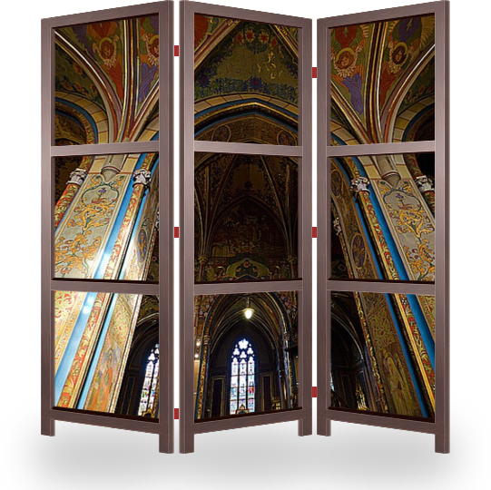 Ширма эконом отлично подойдет для временного размещения, рекламы, для отгораживания объектов интерьера и его дополнения. Лицевая сторона с изображением, обратная сторона открытый каркас