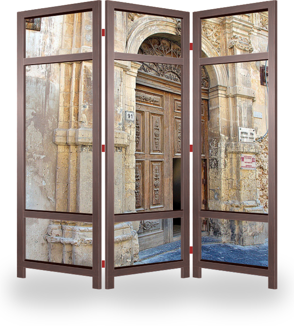 Ширма эконом отлично подойдет для временного размещения, рекламы, для отгораживания объектов интерьера и его дополнения. Лицевая сторона с изображением, обратная сторона открытый каркас