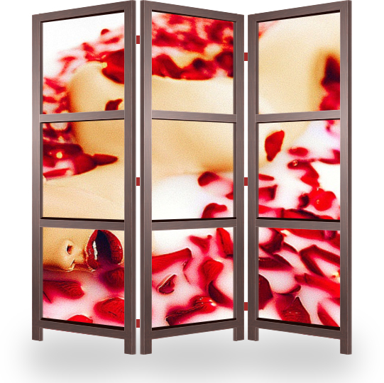 Описание ширмы Ню-арт портрет с использованием натурального освещения. Апатраменты с джакузи. Выбеленная вода с испрльзованием лепестков роз. Водостойкий макияж. Эмоциональная модель