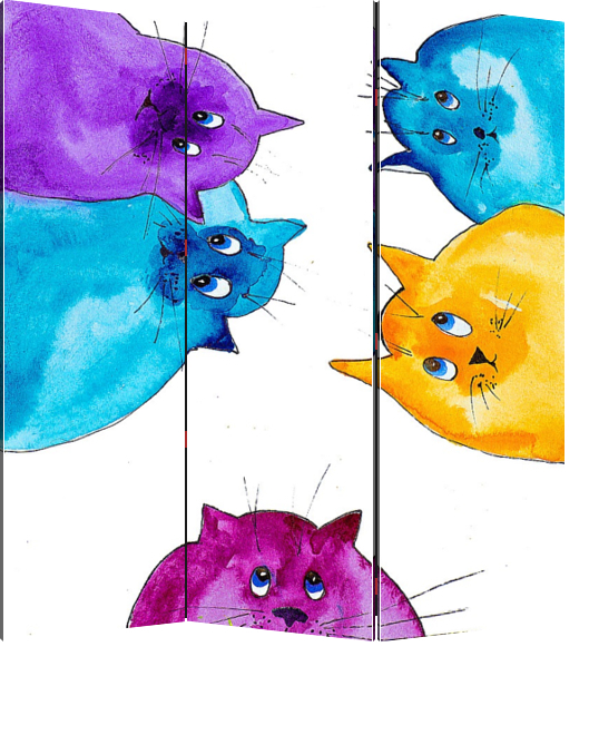 Описание ширмы Любовь Купцова - Российская художница, работающая с различными материалами и техниками. Прежде всего это акварель, уголь и масло. Также занимается вышивкой, прижиганием по ткани, росписью стен.Самыми любимыми сюжетами являются животные, птицы, цветы