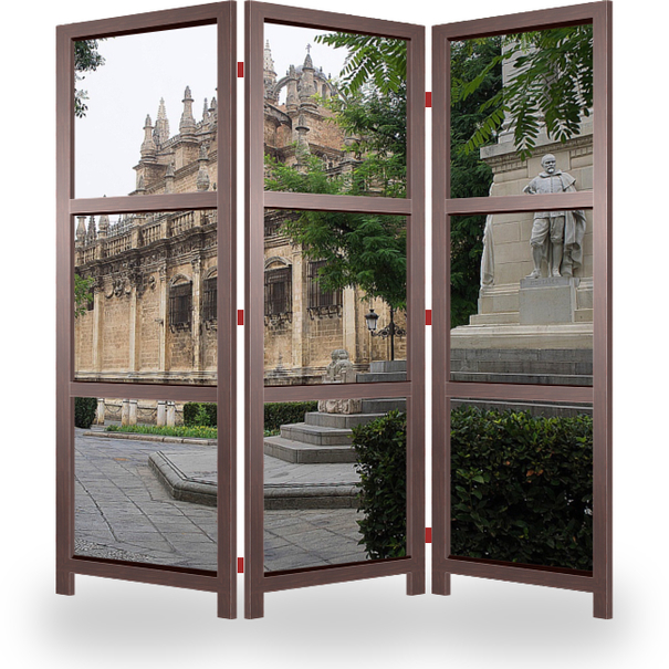 Описание ширмы Если вы побывали в Севилье, то вам захочется туда вернуться - чтобы опять побродить по старому городу, обойти кафедральный собор, полюбоваться алькасаром, посмотреть, как течет Гвадалквивир...