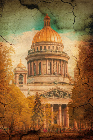 Изображение живописного вида Исаакиевского собора в Санкт-Петербурге в ретро стиле прекрасно подойдет для вашей комнаты.