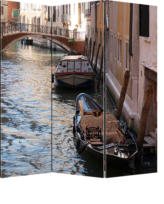 Описание ширмы Венеция - это 118 островов, 150 каналов - водяных улиц и переулочков, около 400 мостов, гондолы и гондольеры, церкви и прекрасные фасады домов, вырастающих прямо из воды...