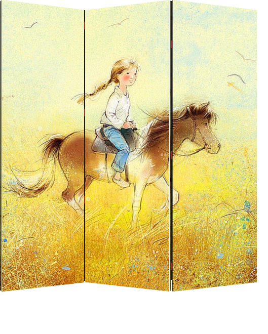 Описание ширмы А вы мечтали в детстве о своей лошадке? Чтобы и кормить ее, и кататься. И чтобы вы были совсем-совсем друзья? Если да, то эта картина подарит вам это удивительное чувство, когда мечты сбываются.