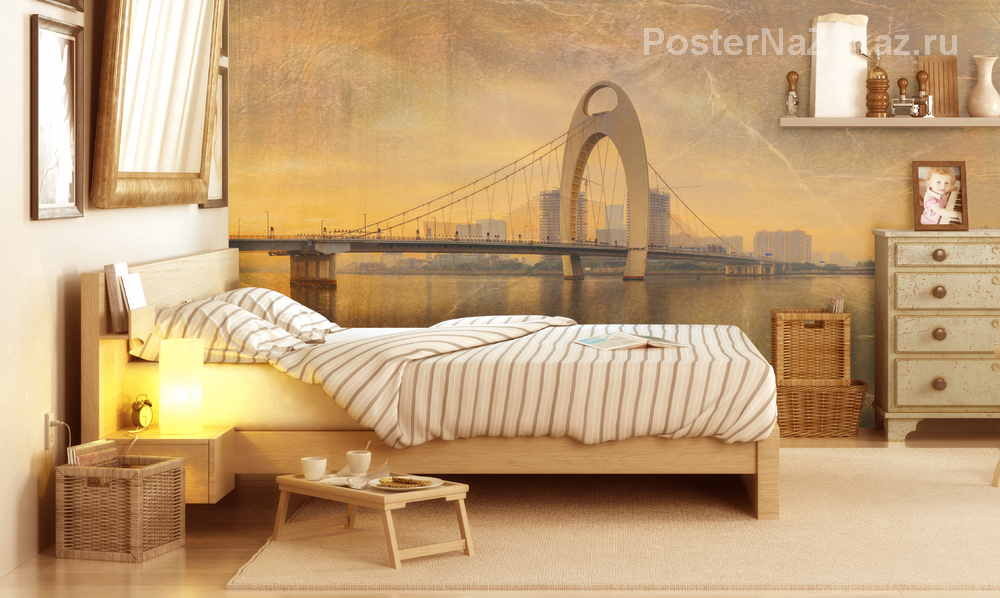 Фотообои с пейзажем современного моста реки Чжуцзян и современного здания в Гуанчжоу в Китае, прекрасное дополнение к оформлению вашей комнаты.