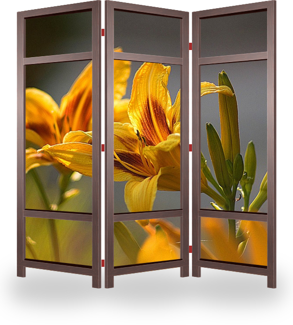 Описание ширмы Постер с нежными цветами украсит ваше помещение, придаст свежести вашим чувствам, напомнит вам моменты общения с природой, перенесет в мир цветов, свежести, первозданной радости бытия...