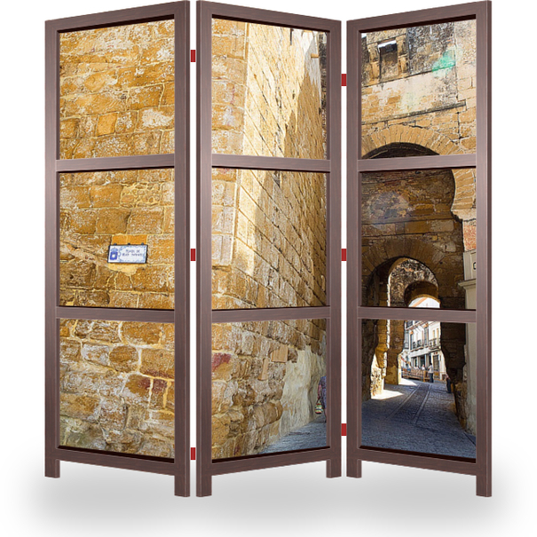 Описание ширмы Прогулки по Кармоне. Кармона - городок недалеко от Севильи (30 км), окруженный крепостными стенами с белоснежными зданиями и стенами, узкими улочками.