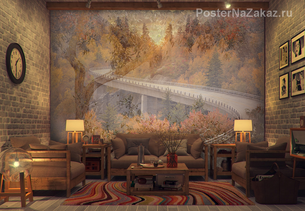 Фотообои с осенним пейзажем, который увеличивает пространство, отличное дополнение к оформлению вашей комнаты.
