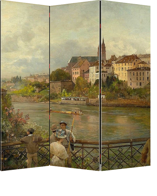 Ширма "Вид с середины моста Рейн на Базельский собор. 1889"
