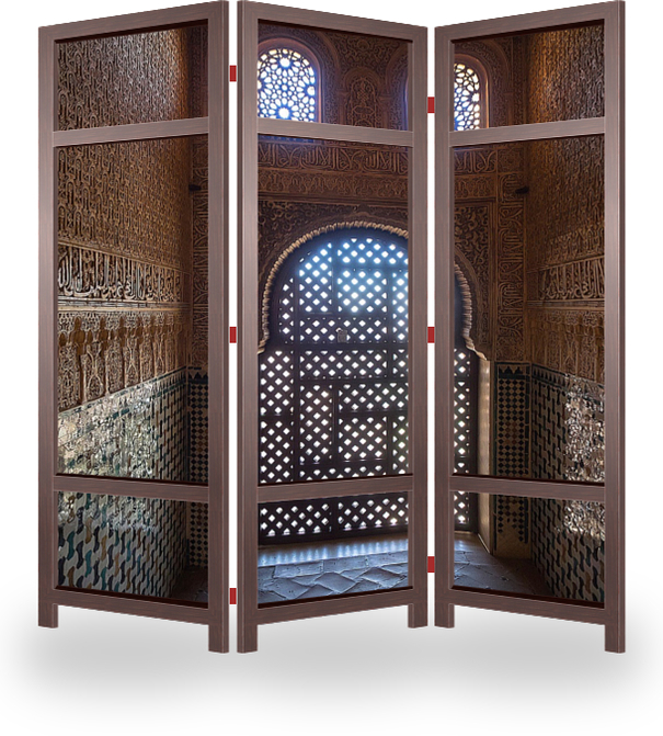 Описание ширмы Гранада знаменита многими историческими памятниками архитектуры. К наиболее ярким памятникам маврского периода не только в Гранаде, но и во всей Испании, относится архитектурный ансамбль Альгамбра. Он был построен в XIV веке как резиденция Насридов.