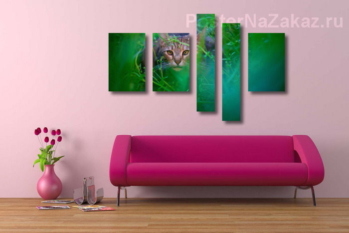 Описание ширмы Среди травы гуляла кошка в полосатеньких сапожках, ступала тихо, не спешила - поохотиться решила...прилегла, потом привстала, засмотрелась, замурчала - Оп!подпрыгнула слегка - Не поймала воробья!