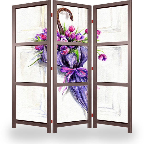 Описание ширмы Милый декор на двери в виде букета тюльпанов в зонтике. А за дверью уютный, теплый дом. Приятная вещица. Дверной декор. Пусть дождь будет только из цветов!