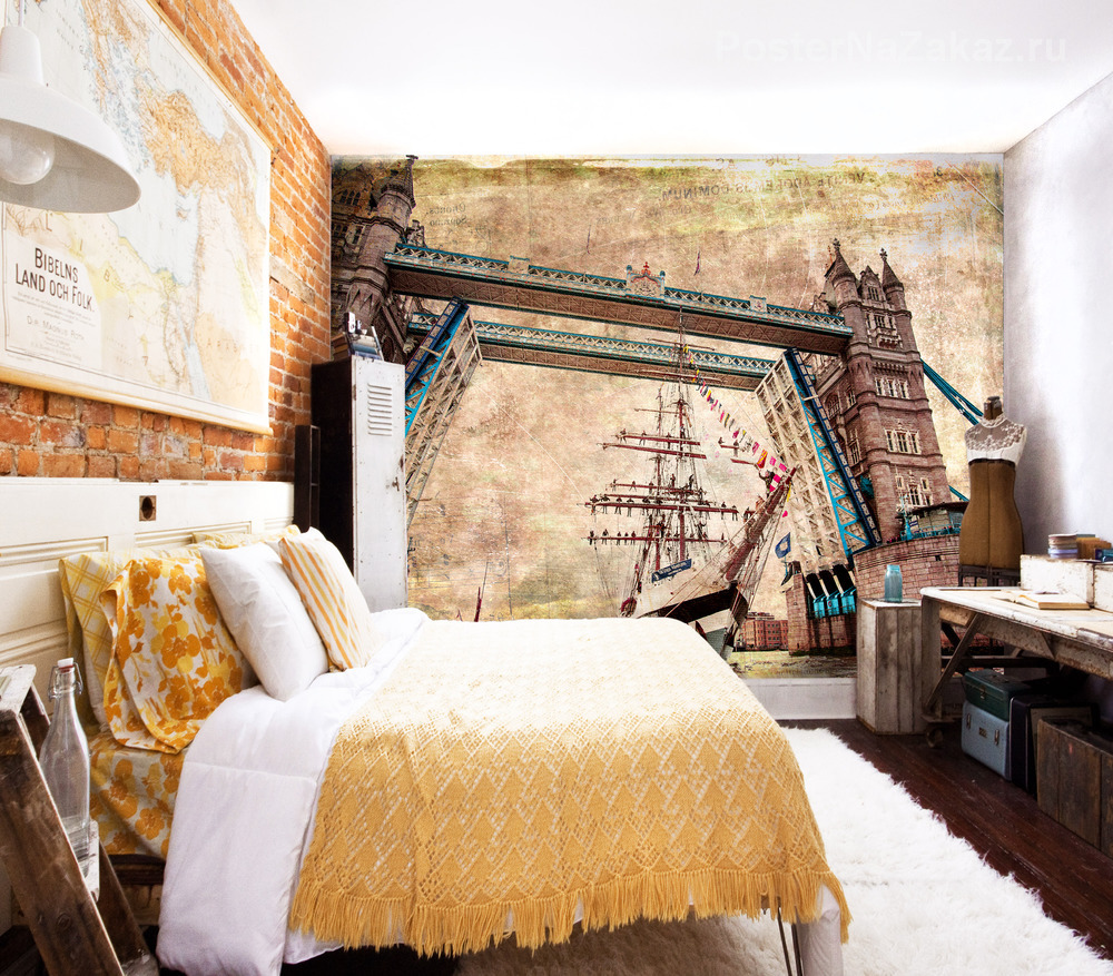 Изображение корабля и разводного моста в стиле ретро открытки прекрасно впишется в любой интерьер и придаст индивидуальность вашему интерьеру.