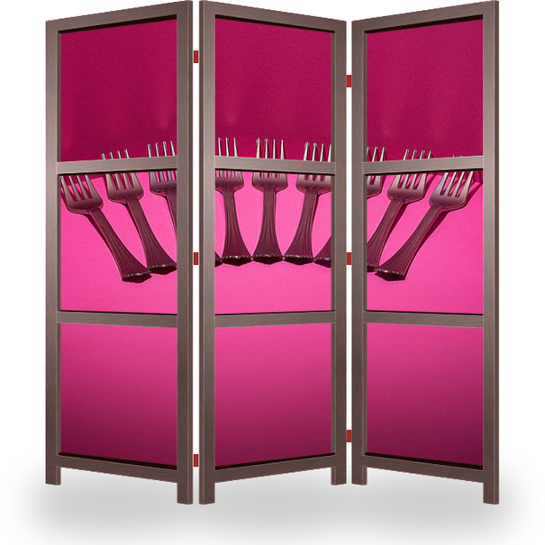 Описание ширмы "Очень простой натюрморт с вилками_5" - это фотоэтюд с предметами и цветным фоном. Простая минималистическая композиция, где главную роль играет свет, цвет, формы и пространственное расположение объектов съёмки