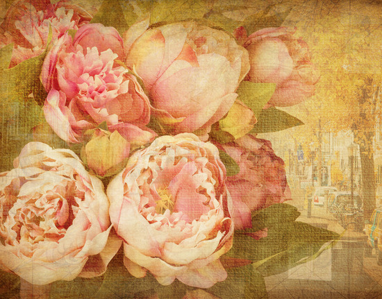 Изображение в интерьере букета из прекрасных пионов на ретро фоне украсит и станет отличным дополнением вашей комнаты.
