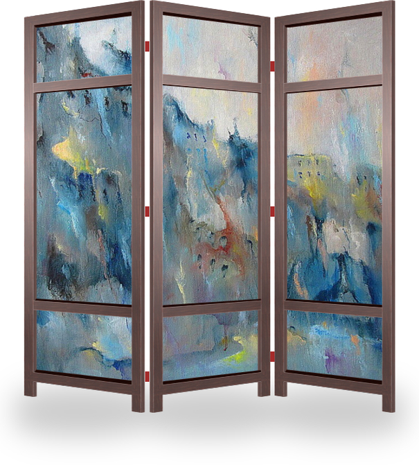 Описание ширмы Авторская картина "Гауди" в технике холст/масло. Размер - 50х60 см. На картине изображен романтический сюжет с дождливым городом, улочкой, каплями, с элементами абстракции. Картина излучает успокаивающую энергетику. При написании картины было сделано