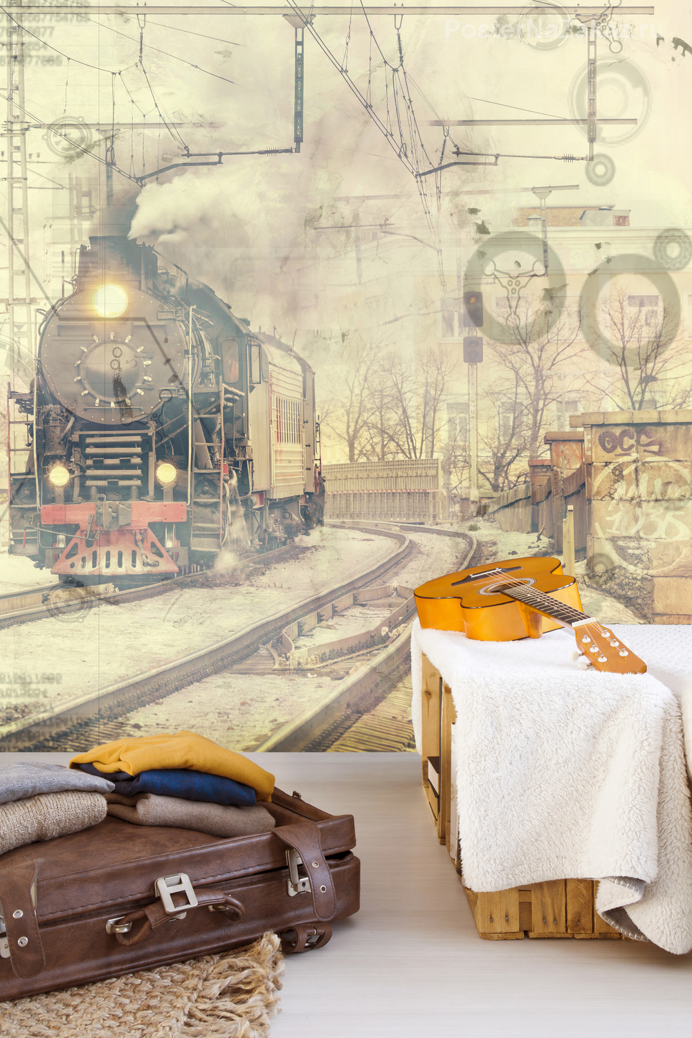 Фотообои с изображением ретро поезда, интересное и оригинальное дополнение к оформлению Вашей комнаты