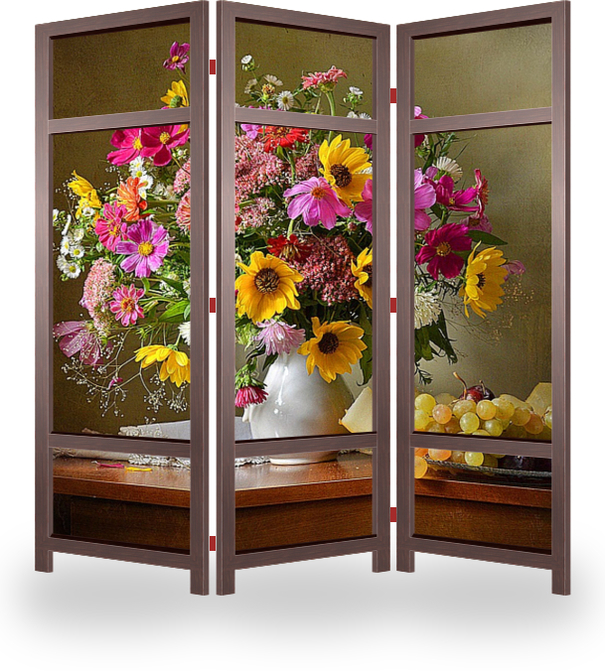 Ширма стандарт - подойдет для постоянного использования в быту или коммерческих целях. В стандартном исполнении идет печать с лицевой стороны и белый баннер с обратной. К комплектации можно добавить колёсики для большей мобильности и выбрать изображение для обратной стороны.