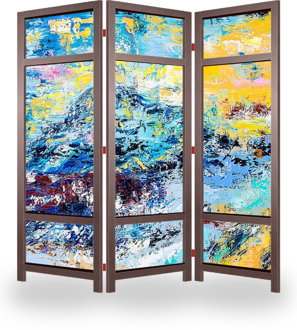Ширма эконом отлично подойдет для временного размещения, рекламы, для отгораживания объектов интерьера и его дополнения. Лицевая сторона с изображением, обратная сторона открытый каркас