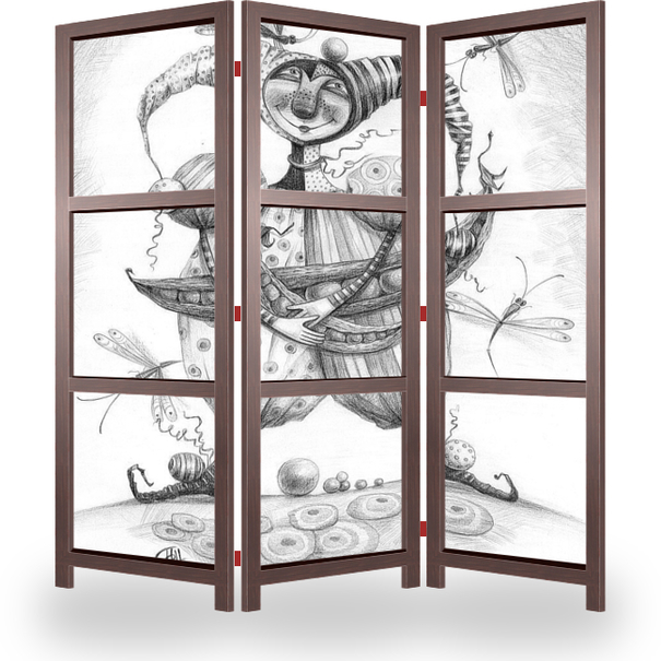 Ширма эконом отлично подойдет для временного размещения, рекламы, для отгораживания объектов интерьера и его дополнения. Лицевая сторона с изображением, обратная сторона открытый каркас