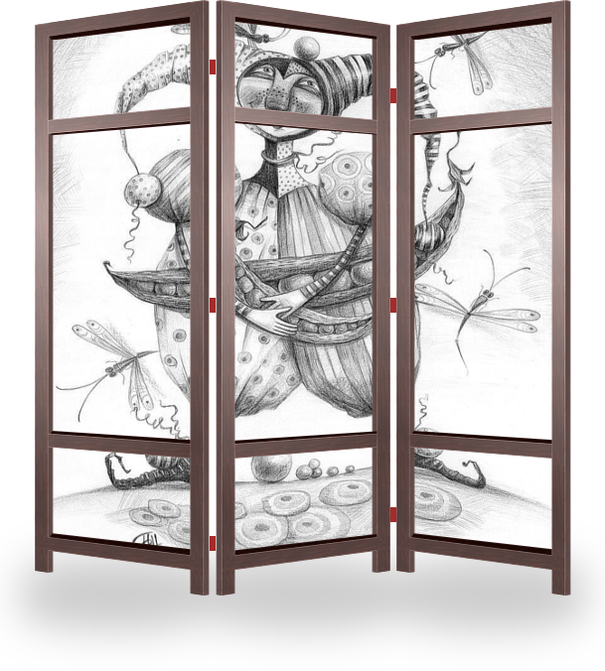 Ширма эконом отлично подойдет для временного размещения, рекламы, для отгораживания объектов интерьера и его дополнения. Лицевая сторона с изображением, обратная сторона открытый каркас