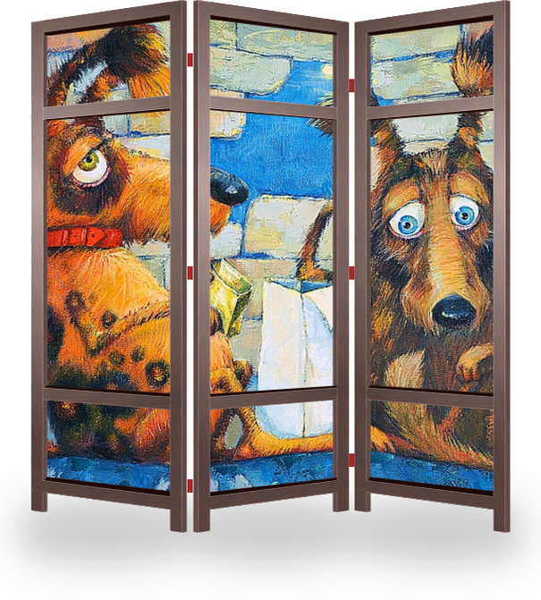 Ширма эконом отлично подойдет для временного размещения, рекламы, для отгораживания объектов интерьера и его дополнения. Лицевая сторона с изображением, обратная сторона открытый каркас