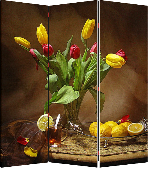 Описание ширмы Выражение nature morte пришло в русский язык из французского. Оно разделено на две части - "nature" и "morte", которые переводятся как "природа, натура, жизнь" и "мертвый, тихий, неподвижный".
