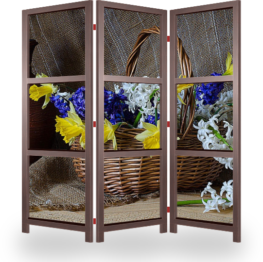 Описание ширмы Натюрморт с первыми весенними цветами- нарциссами и гиацинтами. Такой постер украсит любое помещение в вашем доме или квартире и создаст в них весеннее солнечное настроение.