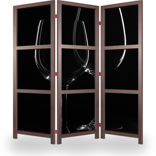 Описание ширмы Небольшой натюрморт из трех предметов, в черно-белом исполнении. Контурный свет, обрисовывает бутылку вина и два бокала. Безупречно подходит в интерьер для ресторана или арт-кафе.