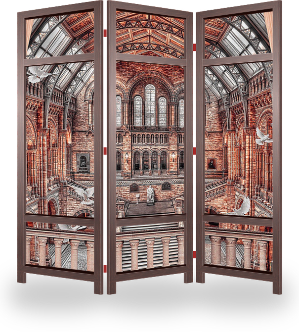 Ширма эконом отлично подойдет для временного размещения, рекламы, для отгораживания объектов интерьера и его дополнения. Лицевая сторона с изображением, обратная сторона открытый каркас