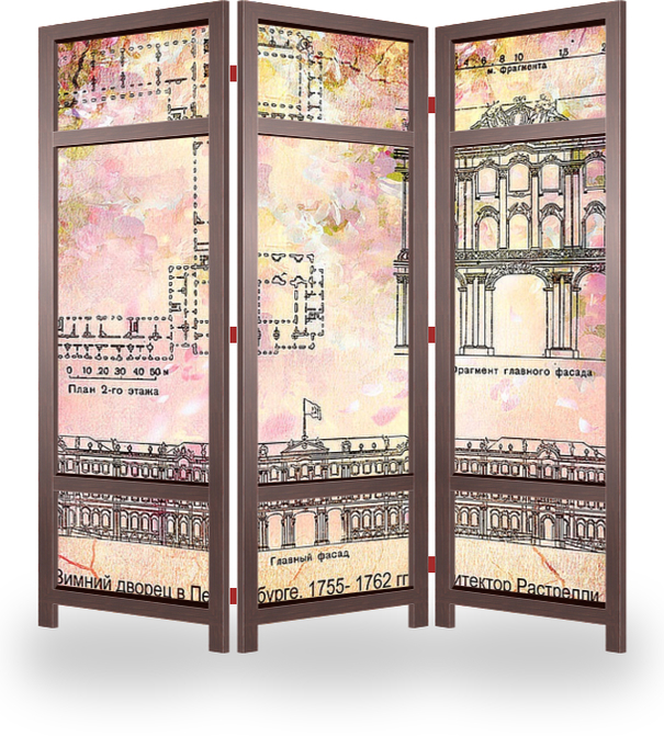 Ширма эконом отлично подойдет для временного размещения, рекламы, для отгораживания объектов интерьера и его дополнения. Лицевая сторона с изображением, обратная сторона открытый каркас